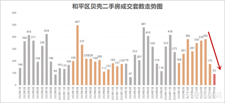 事实上从8月和平就很明显在走下坡路了。之前一个月都能卖300多套,到8月直接砍去了一半。